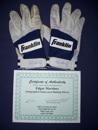 Picked these up from ebay just recently, Edgar Martinez game used batting gloves from 1998. They were a major steal on ebay and they are freaking awesome! Came with coa from Mill Creek.