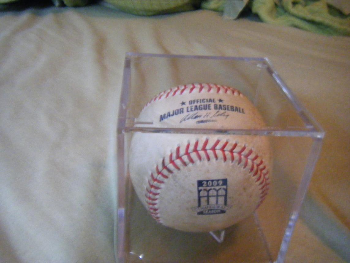 The ball on the right was hit by Jorge Posada and then used as a warm up ball by Mariano Rivera and Phil Coke. Phil threw it to me when he was done, and I had Phil sign it. I asked him what pitch he was working with Mo on. He said it was a slider that Mo learned from Mel Stottlemyre. Pretty neat.
