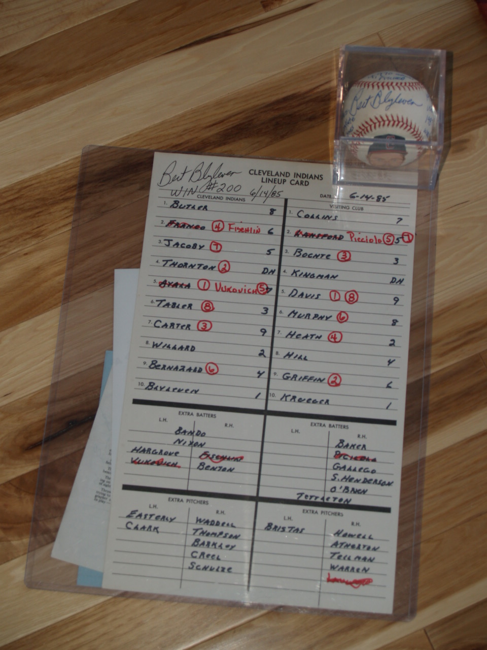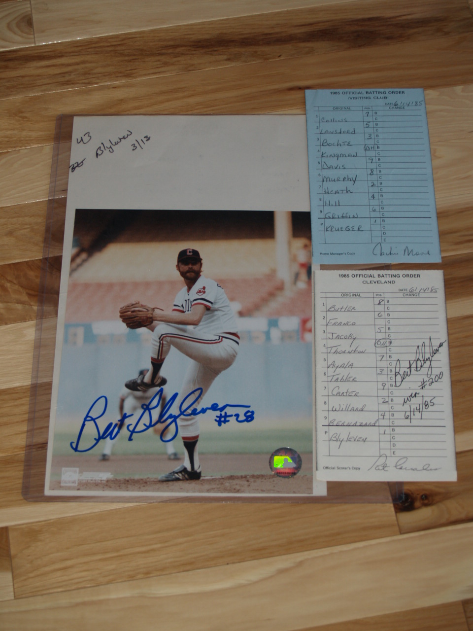 For Blyleven, I have the signed lineup and batting cards from his 200th win, and what I feel is the best auto'd Blyleven ball out there. It's covered with stats on 3 lobes; he did this without me even asking at a show in Pittsburgh a few years ago. He seemed impressed because I told him I drove all the way from Cleveland to see him. He convieniently left the 4th panel blank, which I had hand-painted.